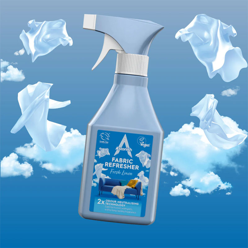 Idealan za zavese, tepihe, jastuke i tapacirani nameštaj, ovaj sprej brzo neutrališe mirise i revitalizuje.