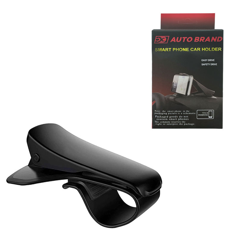 Univerzalni držač za telefon u automobilu, dizajniran za montažu na kontrolnu tablu. Ima zakrivljenu osnovu i kopču za stabilno postavljanje na ivicu kontrolne table. Dizajn je namenjen simulaciji heads-up displeja (HUD), ciljajući bezbedniju vožnju tako što telefon drži u vidnom polju vozača. Kompatibilan je sa većinom pametnih telefona širine do 15 cm. Držač je napravljen od izdržljivog, fleksibilnog i toplotno otpornog ABS materijala.