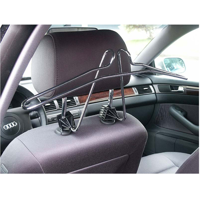 Univerzalna vešalica za odeću za auto. Može se lako montirati u sve tipove automobila i na svaki naslon za glavu.Ne remeti vidljivost i svojim vrhunskim kvalitetom se savršeno prilagođava enterijeru svakog vozila. Izrađena je od INOX-a sa fiksirima od kvalitetne plastike. Elastičnost materijala obezbeđuje stabilnost nakon fiksiranja ali i jednostavno skidanje. Duplirani oblik obezbeđuje da garderoba stoji stabilno i ne dozvoljava pravljenje "ivica".