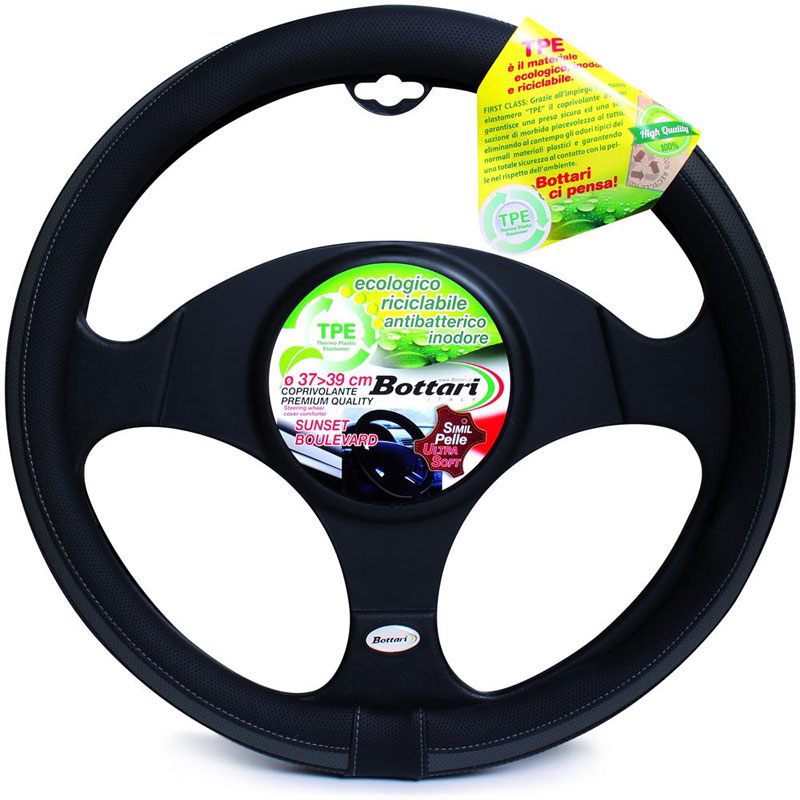 Navlaka volana izrađena od TPE (Thermo Plastic Elastomer), čvrstog materijala. Može se reciklirati, antibakterijska i bez neprijatnih mirisa. Dizajnirana za prečnike leži između 37 i 39 cm. Jednostavno i brzo postavljanje. Idealna je za pokriivanje originalnog upravljača, koji je pohaban ili nije po Vašem ukusu.