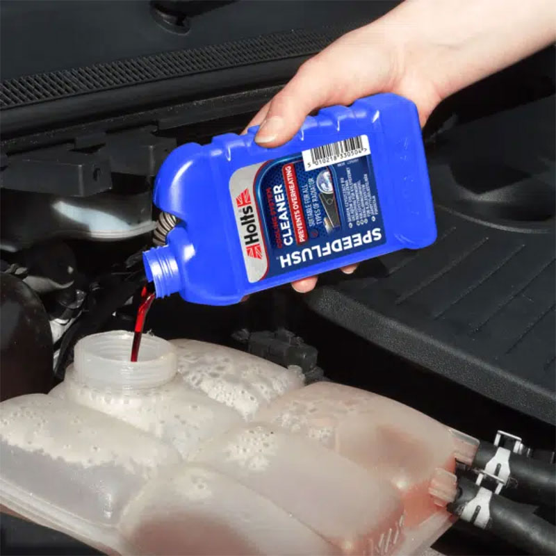 Holts Speedflush je efikasan način za čišćenje sistema hlađenja automobila, uključujući creva, kanale i hladnjak. Proizvod sadrži specijalizovana sredstva za čišćenje koja uklanjaju kamenca, naslage i rđu iz sistema hlađenja bez izazivanja blokada ili oštećenja, što ga čini mnogo efikasnijim načinom ispiranja sistema hlađenja nego korišćenjem same vode. Pogodno za upotrebu sa svim sistemima za hlađenje vozila. Podižući naslage i kamenac, ispira čestice i koroziju iz hladnjaka, što znači da više nema začepljenih kanala i da je sistem hlađenja maksimalne efikasnosti. Ispiranje štetnog kamenca i naslaga sprečiće pregrevanje i produžiće vek trajanja vozila. Može se koristiti na bilo kom motoru za čišćenje kamenca i ostataka za brzo čišćenje hladnjaka i sistema za hlađenje. Spreman je za punjenje antifrizom/rashladnom tečnošću. Posebna formulacija mu omogućava da očisti kanale za vodu i bezbedan je za upotrebu na metalnim i gumenim crevima. Holts Speedflush treba koristiti kad god je potrebno ispiranje sistema za hlađenje automobila. Intervali u kojima treba primeniti proizvod zavise od navedenog veka trajanja rashladne tečnosti/antifriza. Visokokvalitetna rashladna tečnost/antifriz obično traje 10 godina pre nego što je potrebno da se zameni. Međutim, jeftinije, manje kvalitetne tečnosti mogu zahtevati češću promenu, potencijalno svakih 3-5 godina. Prilikom svakog uklanjanja stare rashladne tečnosti/antifriza iz automobila, koristiti Holts Speedflush za čišćenje sistema za hlađenje pre nego što se sipa nova rashladna tečnost. Uklanjanjem naslaga i vraćanjem performansi, obezbeđuje se maksimalna efikasnost sveže rashladne tečnosti/antifriza u sistemu.