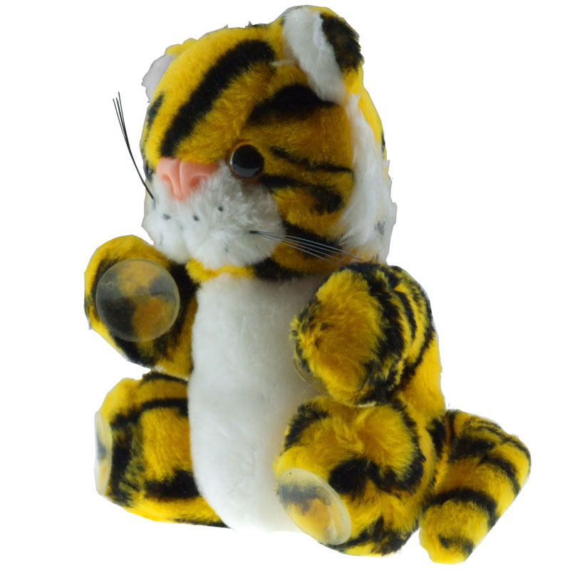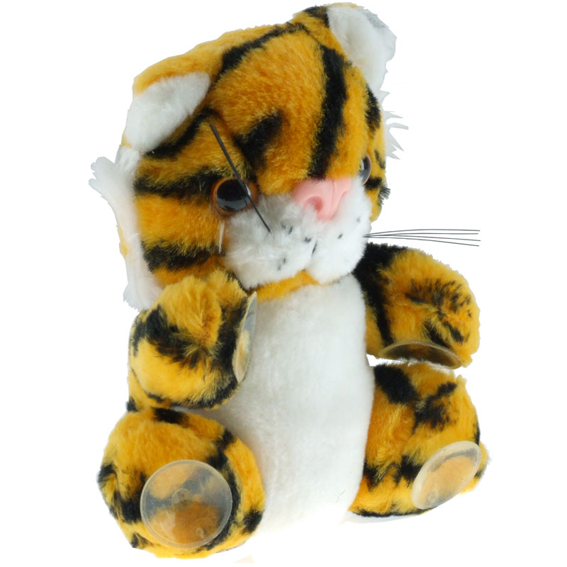 Plišana figura tigra napravljena od antialergijskog pliša. Vakuum žabice postavljene na nogama omogućavaju pričvrsćivanje lutke na željeno mesto.