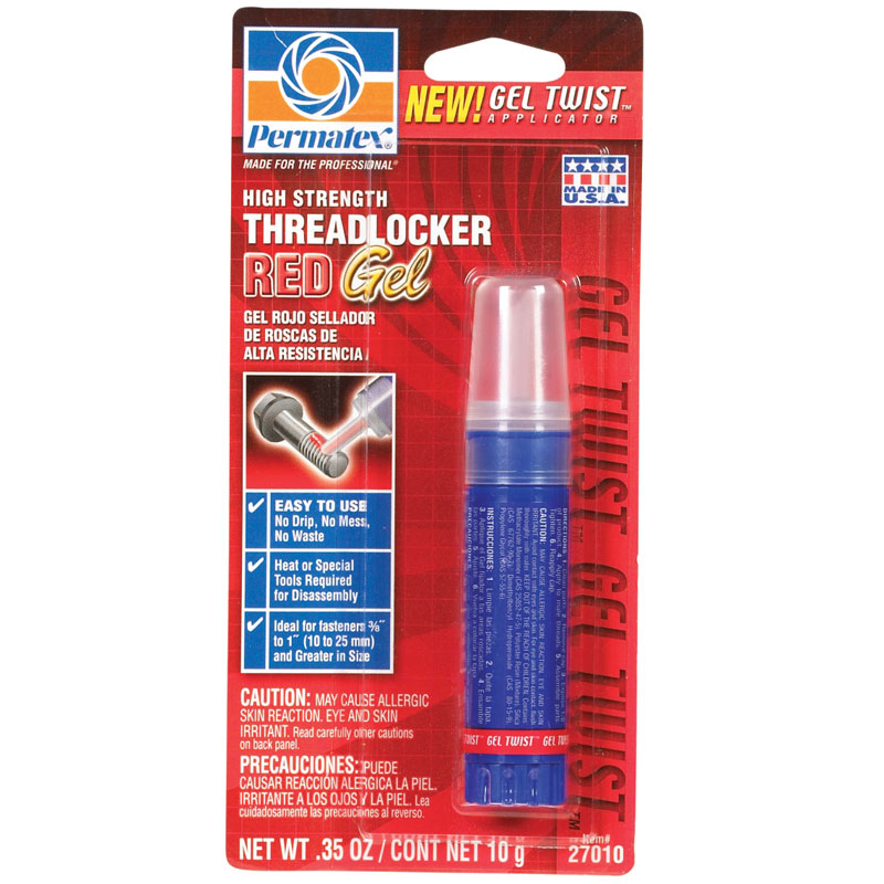 Lepak za šrafove u gelu, visoke snage, crveni. Jednostavan za upotrebu, bez mrlja i otpada. Toplota i specijalni alati neophodni su za rasklapanje zalepljenih delova. Idelan za šrafove od 10mm do 25mm.Sprečava šrafove da se olabave usled vibracija.Štiti navoje od korozije.