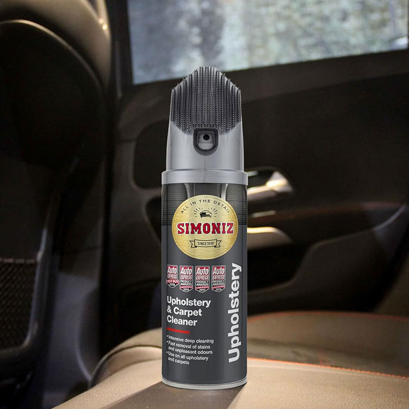Simoniz sredstvo za čišćenje tapacirunga i tepiha je sredstvo za čišćenje tkanina i tepiha u automobilu koje efikasno uklanja prljavštinu, mrlje i neprijatne mirise, ostavljajući enterijer lepog izgleda i mirisa. Zahvaljujući svojoj snažnoj formuli za čišćenje i praktičnom aplikatoru sa glavom četke, nikada nije bilo lakše čistiti i održavati tepihe i tapacirung u automobilu. Brzo deluje i uklanja čak i tvrdokornu i zasušenu prljavštinu sa tepiha i sedišta u automobilu. Snažna pena za čišćenje prodire duboko u vlakna i brzo uklanja mrlje čineći da tkanine izgledaju kao nove. Takođe uklanja neprijatne mirise, ostavljajući automobil sa svežim i čistim mirisom. Karakteristike i prednosti: Nagrađivano sredstvo za čišćenje tepiha za automobile redovno se ocenjuje kao najbolje u nezavisnim testovima. Savršeno za one koji vole svoj automobil, sredstvo za čišćenje tapacirunga i tepiha Simoniz pruža izvanredne performanse čišćenja, uklanjajući prljavštinu i mrlje sa mekih površina. Decenije znanja o nezi automobila uložene su Čistač mebla i tepiha, tako da ostavlja odlične rezultate nakon svake upotrebe. Uklanjajući mrlje i neprijatne mirise, proizvod je idealan za sva mebla i tapacirane površine u automobilu – uključujući patosnice, sedišta, obloge prtljažnika. Zahvaljujući svom dejstvu i praktičnom aplikatoru sa četkom, sredstvo za čišćenje tapacirunga i tepiha se lako nanosi i daje rezultate za nekoliko minuta.