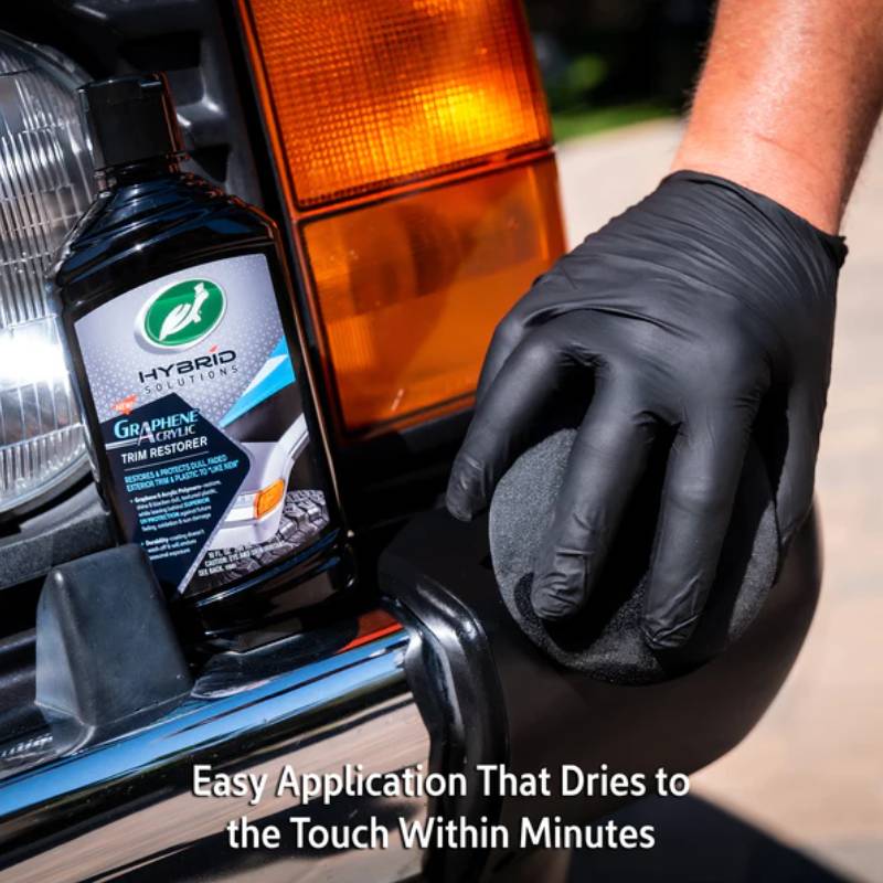 Hibrid Solutions Graphene Acrilic Trim Restorer je napredna formula koja obnavlja i štiti izbledele spoljašnje plastične delove. Kombinacija grafena i akrilnih polimera vraća sjaj i doprinosi intenzivnoj crnoj boji plastike koja je izbledela i bez sjaja, dajući vrhunsku UV zaštitu. Ovaj izdržljivi premaz se ne ispira i izdržaće sezonsko izlaganje. Suv je na dodir u roku od nekoliko minuta od nanošenja. Graphene Acrilic Trim Restorer deluje dobro i na zaštiti novih pastičnih delova od bleđenja koja mogu nastatati usled spoljasnjih uticaja, pranja automobila i soli na putevima.